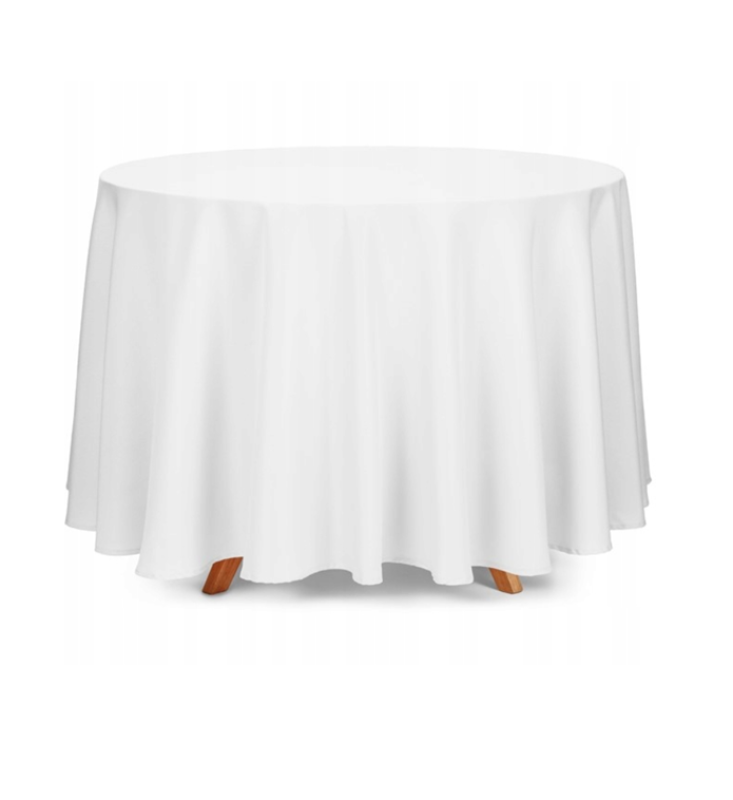 Średnica 320cm. Obrusy wykonane są z gładkiego materiału typu poliester. Idealny podczas imprez plenerowych, w salach bankietowych, konferencyjnych, lokalach gastronomicznych oraz w domu.